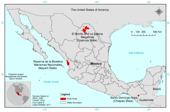 - Valderrama-Landeros, L.; Rodríguez-Zúñiga, M.; Troche-Souza, C.; Velázquez-Salazar, S.; Villeda-Chávez, E.; Alcántara-Maya, J.; Vázquez-Balderas, B.; Cruz-López, M.; Ressl, R. Manglares de México: Actualización y Exploración de los Datos del Sistema de Monitoreo 1970/1980–2015; Comisión Nacional para el Conocimiento y Uso de la Biodiversidad: Ciudad de México, Mexico, 2017. [Google Scholar]