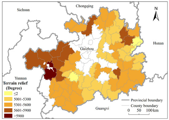 Spatial distribution of terrain relief within each county.