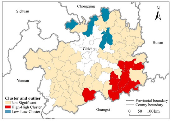 Local autocorrelation of county-level poverty incidence in Guizhou Province.