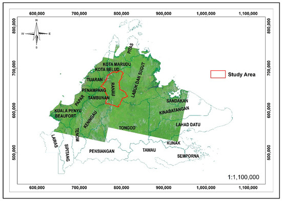 Ranau district as shown in Figure 1 is one of the administrative districts in Sabah, geographically located between 5°30’ N to 6°25’ N and 116°30’ E to 117°5’ E, covering an area of 3555.51 km2 (1372.79 square miles) [30]. The district is surrounded by Kota Marudu to the north, Kota Belud to the northeast, Tuaran to the west, Tambunan to the southwest, Keningau to the south, Tongod to the southeast, and Beluran to the east [31]. It is characterized by the Crocker Range in its northern part and the Pinousok summit which runs in a southwesterly direction. The Ranau plain and Trus Madi Range cover its eastern side and the southern part is bounded by the Labuk highlands [30]. The geography is predominantly attributed to its mountainous landforms most notably; Mount Kinabalu with a valley plain. Based on the 2010 census by the Department of Statistics Malaysia, the population of the district was 94,092 [31].
