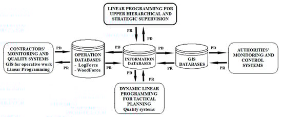 Information flowchart for wood procurement management: PD = planning data; PR = planning results.