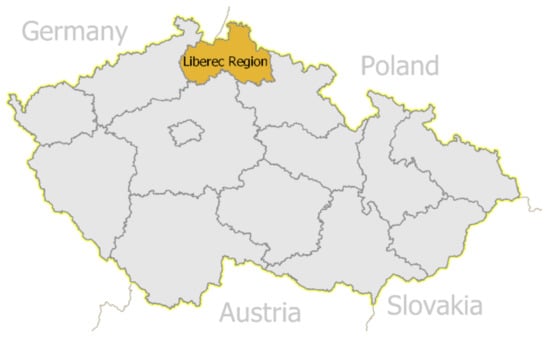 We selected an area of interest as a case study to assess its level of threat, but only one region, not the entire territory of the Czech Republic. One region alone poses sufficient computational complexity to calculate the level of threat. However, based on our findings and the compiled procedure, it would be possible to evaluate larger areas and, therefore, the entire country. The Liberec Region was selected as suitable territory mainly because it is located in the Czech Republic’s mountainous area, which has a significant occurrence of forest stands existing near railway infrastructure (Figure 7).