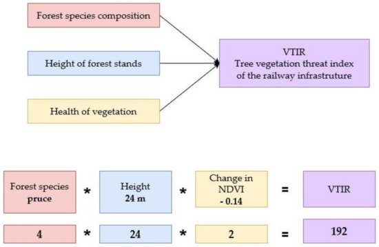The article presents a method for determining and evaluating the threat to railway infrastructure from falling trees. The main objective was to identify the degree of threat according to three parameters: the height of tree stands, species composition, and vegetation health. Identification of the threat to individual railway sections would allow the creation of measures that could increase operational safety. Evaluation should be carried out at regular intervals to assess vegetation health during certain seasons. We, therefore, recommend the use of satellite images to provide a data source and regular data updates. The potential benefit is a reduction in railway infrastructure damage and an increase in traffic flow, especially during periods of exceptional weather conditions involving high wind, ice or heavy snow. The new method presented in the paper, based on data for railway infrastructure, law and other data sources in the Czech Republic, determines a Vegetation Threat Index for Railways (VTIR). We selected the Liberec Region as an example case study because of its large spread of wooded areas around railway lines and high incidence of railway traffic accidents.