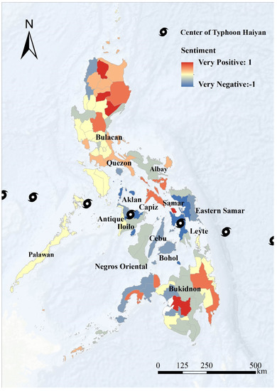 The spatial distribution of public sentiment during Typhoon Haiyan.