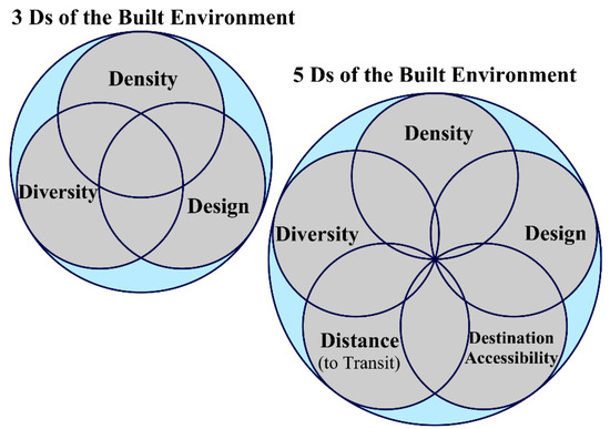 - Cervero, R.; Duncan, M. Which Reduces Vehicle Travel More: Jobs-Housing Balance of Retail-Housing Mixing? J. Am. Plan. Assoc. 2006, 72, 475–490. [Google Scholar] [CrossRef]