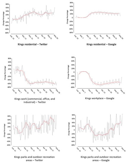 Twitter- and Google-based human mobility changing patterns in Kings County.
