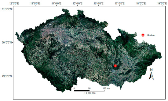 Location of Rudice in the Czech Republic (imagery: Sentinel-2).
