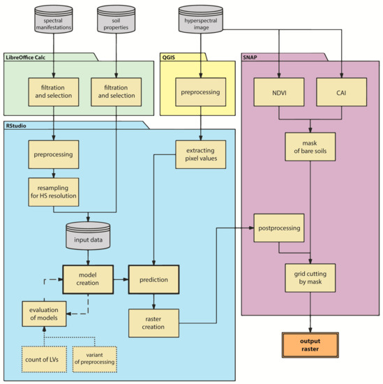 Soil properties are most often determined in the laboratory. Unfortunately, classical laboratory methods are often time consuming, expensive, and destructive. Therefore, new methods are being developed to eliminate these disadvantages [6]. One of these new methods is laboratory spectroscopy. Another option is to employ remote sensing, which is probably the least expensive path and non-destructive to the soil. Aerial and satellite multispectral and hyperspectral images can map a relatively large area in a short time. However, when determining soil properties using this method, it is necessary to eliminate the influence of the atmosphere to achieve pure reflectance [13]. For example, aerial photography with a hyperspectral camera has been used in the past to detect nitrogen [47]. Of the satellite systems, the Hyperion hyperspectral system [48] or the Landsat 5 and 7 multispectral systems [9,49] are widely used.