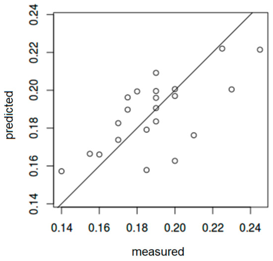 Since the data sample included only 22 samples, the maximum number of components was about 20 depending on the applied pre-treatment method. This is important because the best model required six components, which is almost one-third of all available data. Figure 6 shows the basic predictive abilities of the model using six components determined based on cross-validation. The closer the individual values are to the line of best fit, the better the model performed.