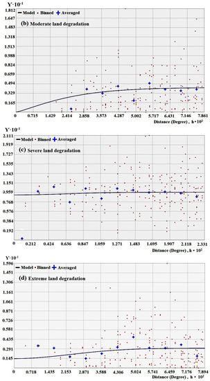 Classical statistics and geostatistics methods were used for data analysis. The spatial distribution map for SOM was drawn using the Kriging interpolation function within the geostatistics module of the ArcGIS 10.5 software. Based on the different sampling densities and soil type, the random grid was set up under four land degradation types (i.e., mild, moderate, severe and extreme) for a total of 225 sample points. The spatial variability and correlation of soil organic matter were analyzed using the GS + 9.0 and ArcGIS 10.5 software [26,27]. The calculation formula of the semivariogram can be presented as follows: