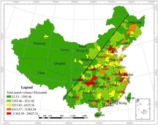 Spatial distribution of the total Baidu search volume.