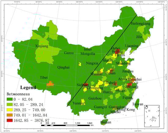 Betweenness centrality of the tourism information flow network in China.