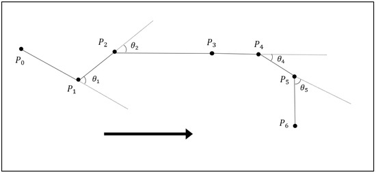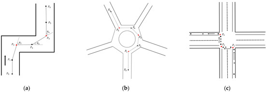 (Turning Feature Points): Turning feature points are important positioning points that are extracted from trajectory T by using a trajectory compression algorithm to reflect the turning behavior of the cycling vehicle, namely,(0 =, whereis a subset of T.