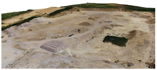 In some parts, the vegetation on stockpiles posed difficulties to make precise measurements from the defined boundaries. Therefore, additional estimations of five stockpiles were performed, with no obstructions, and the results obtained were included alongside the RTK survey results for comparison. The difference of volume calculation between the conventional and the UAV-based surveys was 1.96–4.67% and comparing between the UAV surveys—0.22 to 2.76%, and higher accuracy (1.08–2.12%) was obtained acquiring images from 74 m height, which influenced the time of flight to last up to 54% longer and the amount of data to be captured 55% larger, compared to the 100 m flights. The quantities are provided in Table 6. The smallest difference of 3.43% was obtained with PPK 74 m survey compared to the conventional approach. Visual results are shown in Figure 15 and Figure 16.