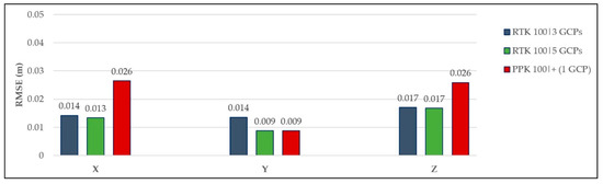 PPK and RTK surveys GCPs and CHPs RMSE results.