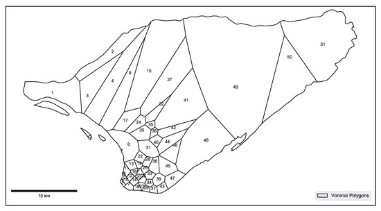 2.2.1. Voronoi Tesselation of the Study Area