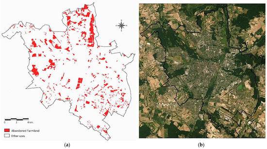 - Stryjakiewicz, T.; Królewicz, S.; Ruiz-Lendínez, J.J.; Mickiewicz, B.; Motek, P. Abandoned agricultural land quantification in urban areas using high resolution satellite imagery. In Proceedings of the RSA Central and Eastern Europe Conference: Metropolises and Peripheries of CEE Countries: New Challenges for EU, National and Regional Policies, Lublin, Poland, 11–13 September 2019. [Google Scholar]