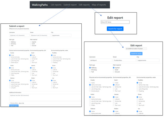 The idea of increasing data and information quality in citizen science platforms by integrating quality characteristics into the model is presented in [21,46]. Ref. [46] provides general guidelines for increasing data quality by not allowing insufficient quality data into the system and [21] provides the initial design for integrating data quality characteristics into the design of a citizen science platform via specific checks or attaching the quality characteristic into the data model. To test and evaluate this idea, a citizen science web platform called WalkingPaths is developed. The platform is developed using ReactJS for the frontend and NodeJS for the backend with an NoSQL database, MongoDB. Mongoose middleware is used to enforce syntax restrictions on data. The platform integrates the information quality characteristics listed in Table 2 into the platform’s design.
