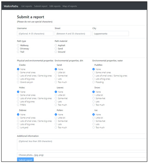 The platform collects walking path information from citizens in Finland. Citizens are asked to fill out a simple form consisting of the path’s location and condition, and they are given an option to send an image in addition to the observation. The data is collected from March 2020 to September 2020, and the final dataset consists of 108 observations.