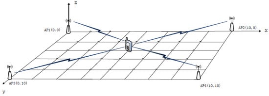 Assume that L wireless Access Point(AP) nodes are set in the indoor scene, and the coordinate of the l-th AP is . The moving unknown node can receive the signal strength from the APs. The position and velocity of the moving unknown node are described as the state . Its motion can be described by [31]