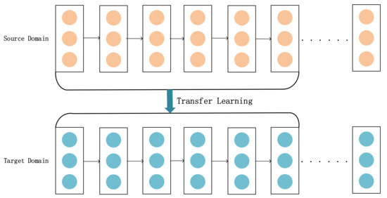 In general, the definition of transfer learning is to apply the knowledge or model obtained in a field to different but related fields [30]. Figure 8 shows the schematic diagram of deep neural network-based transfer learning. It can be implemented as follows: First, we used training datasets for network training in the source domain. Secondly, part of the pretrained network in the source domain was transformed into a part of the new network in the target domain. It is worth mentioning that, when training the transfer learning model, the pretraining network model parameters remained unchanged, and only the parameters of the newly added model were updated [25].