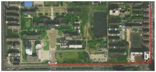 To test the practicality of the positioning system proposed in this paper, we implemented an experiment in a real outdoor environment, which contains various scenarios. Figure 10 shows the whole experimental area. The aerial pictures come from the Baidu map. We do not need the true location of LTE BSs. Considering the diversity of the scene, the experimental scenario is suitable for evaluating the proposed positioning system.