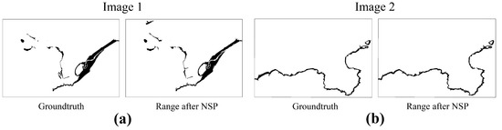 Results after NSP from two images in 2015. (a) Groundtruth and result of Image 1. (b) Groundtruth and result of Image 2.