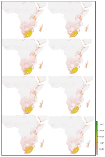 Using the influential bioclimatic factors in the species distribution, the habitat suitability prediction was performed under the current and future climatic scenarios to estimate the changes in the ecological systems and how the species will respond to the changes in different climatic variations. This section discusses the spatial characteristics of the utilised distribution data, i.e., India’s southwest and northeast monsoon seasons and Africa’s rainy season, especially in Southern Africa.