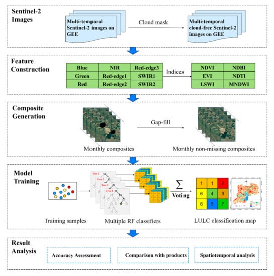 Luo, J.; Ma, X.; Chu, Q.; Xie, M.; Cao, Y. Characterizing the Up-To-Date Land-Use and Land-Cover Change in Xiong’an New Area from 2017 to 2020 Using the Multi-Temporal Sentinel-2 Images on Google Earth Engine. ISPRS Int. J. Geo-Inf. 2021, 10, 464. https://doi.org/10.3390/ijgi10070464