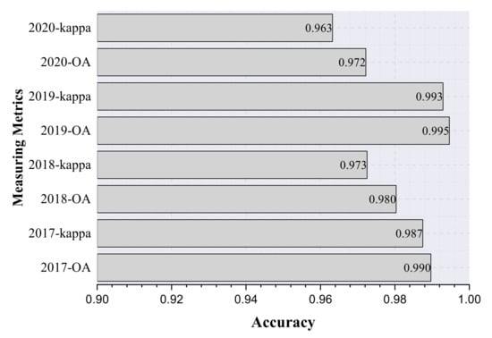 - Congalton, R.G. A review of assessing the accuracy of classifications of remotely sensed data. Remote Sens. Environ. 1991, 37, 35–46. [Google Scholar] [CrossRef]