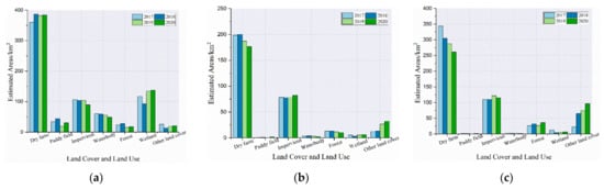 3.3. Assessment of the Different LULC Changing Patterns of Three Counties in Xiong’an New Area