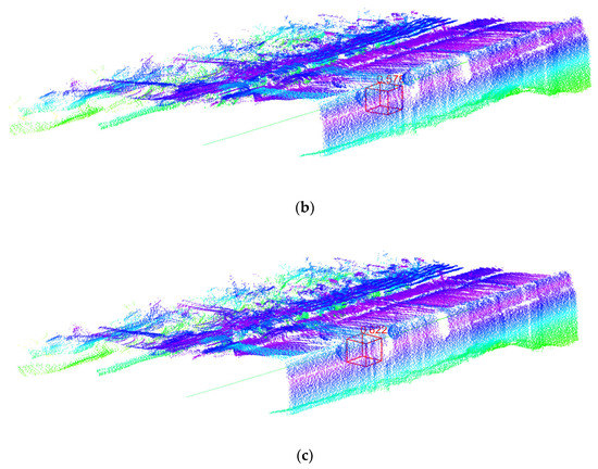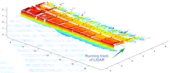 We used MATLAB R2019a to read the point cloud of FMMF collected by LiDAR. For intuitive observation, we intercepted part of the point cloud for visualization, as shown in Figure 11. The blue line in the point cloud is the track of the LiDAR.