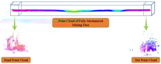 As shown in Figure 14, the top of the figure is the main view of the point cloud of the whole FMMF in the Y direction. The lower part of the figure is the top view of the head and tail point clouds of the FMMF in the Z direction, which occupies a smaller space than the whole FMMF. When the shearer reaches the head or tail of the FMMF, it adjusts the driving direction to mine again.