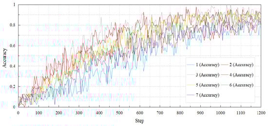 In Equations (3) and (4), is the exponential decay rate of the first-order moment estimation, and is the exponential decay rate of the second-order moment estimation. represent the gradient of the time step sequence where the gradient obeys . We initialize the second-order moment estimation . By iterating Equation (4), we can obtain the function of the gradient and decay rate in all time steps, as shown in Equation (5).