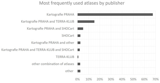 The results showed that the most used school atlas is the atlas from Kartografie PRAHA. The other two school atlases from SHOCart and TERRA-KLUB are mostly used in combination with Kartografie PRAHA. The results are summarised in the graph in Figure 4.