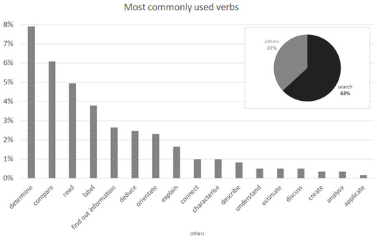 Q7 was designed to determine the proportion of tasks with atlases according to different tiers of Bloom’s taxonomy of educational objectives. Unfortunately, this direct question did not lead to the expected results since most teachers do not use this concept in practice. The authors considered that the distribution of tasks in various tiers of Bloom’s taxonomy was an important indicator of the fulfilment of the atlas’ potential. From this reasoning, an alternative approach was applied. Verbs were identified from the answers to Q6 (tasks with atlases) using linguistics methods. These verbs were assigned to the individual tiers of Bloom’s taxonomy with the aid of a list of action verbs published by Newton et al. (2020). The list summarises the assignment of over 400 action verbs according to 47 different approaches at 35 universities in the United Kingdom. Despite the use of this source, the assignment of action verbs was not simple in some cases. The reason was that atlases are specific teaching aids, and some commonly used verbs have different meanings in relation to maps. An example might be the verb to determine (geographical position).