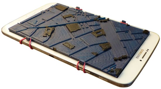 - Taylor, B.; Dey, A.; Siewiorek, D.; Smailagic, A. Customizable 3D printed tactile maps as interactive overlays. In Proceedings of the 18th International ACM SIGACCESS Conference on Computers and Accessibility, Reno, NV, USA, 23–26 October 2016; pp. 71–79. [Google Scholar] [CrossRef]