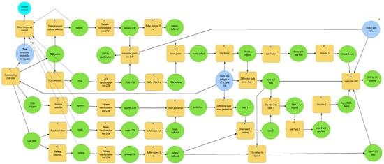 Illustration of the complexity of the data processing scheme for the Public Transport map type (link to the toolbox with all three Model Builder models with readable captions is available in the Supplementary Materials section).