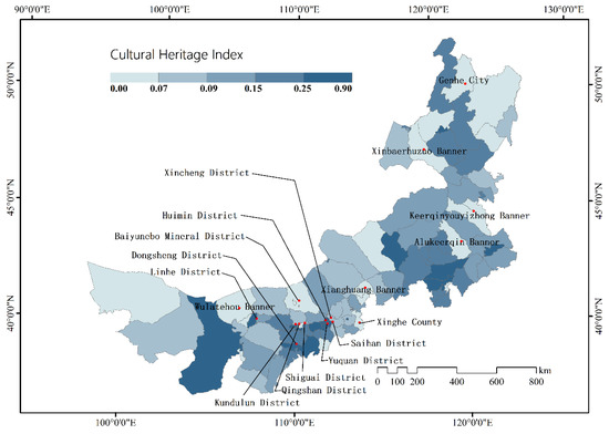 Spatial distribution of the cultural heritage index in Inner Mongolia in 2020.