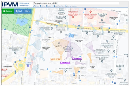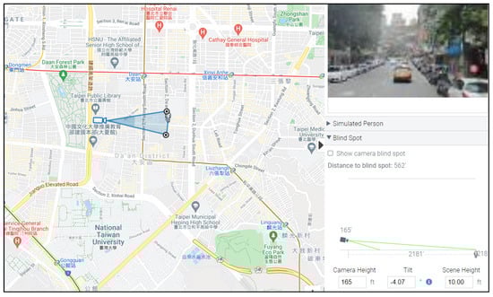 Using 2D FOV to show the captured image (The Chinese on figure represents the landmark name or road name. Source: https://calculator.ipvm.com/ accessed on 21 July 2021).
