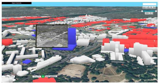 Together, ALEGORIA and Archival City have proposed a spatio-temporal web application that is dedicated to the co-exploitation of heterogeneous data spatialized in a common 3D environment, providing several paradigms for supporting their co-visualization and interactions within the 3D environment and across time, as illustrated in Figure 3. The relevance of this tool was demonstrated with several use cases involving historians and sociologists, with the common objective of better understanding the formation of the Parisian metropolis. The study focused on the evolution of the city of Nanterre (Paris area), which underwent many changes in the 1950s, and, in particular, it focused on shantytown areas. Through census as statistical data and aerial imagery as visual data, a group of historians and sociologists experimented with the relevance of the joint exploitation of those heterogeneous data within the spatio-temporal web application [9].