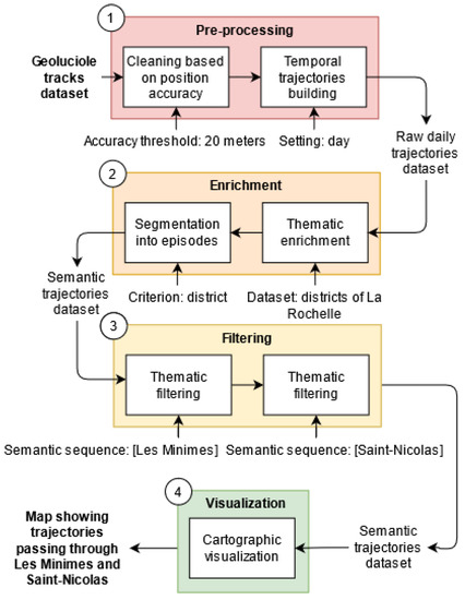 - Nogueira, T.P.; Braga, R.B.; de Oliveira, C.T.; Martin, H. FrameSTEP: A framework for annotating semantic trajectories based on episodes. Expert Syst. Appl. 2018, 92, 533–545. [Google Scholar] [CrossRef]