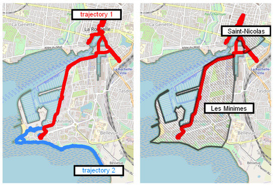 According to [1], the raw trajectory of a moving object is a part of the mobility track that is of interest to a given application. In our context—tourists from the city of La Rochelle—raw trajectories can be defined from mobility tracks on a temporal criterion (e.g., one trajectory per day) or on a spatial criterion (e.g., a trajectory composed only of positions included in the spatial polygon corresponding to the city of La Rochelle).