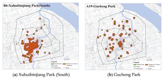 3.1.2. Hotspots of Park Visitors’ Residences Calculated by KDE Method