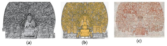 The point cloud model is able to express the geometric details of cultural relics. Three-dimensional point cloud data, as the main source for constructing 3D models with complex geometries in the cultural heritage field, are composed of a massive number of spatial points, i.e., (x, y, z), to represent geometric shapes [