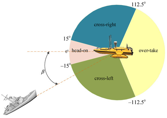 - Step 1: The USV maintains the current state of motion and advances along the preset path. In real time, it senses the position, velocity, and water surface contours of the encountering vessel through the onboard detection sensors.
