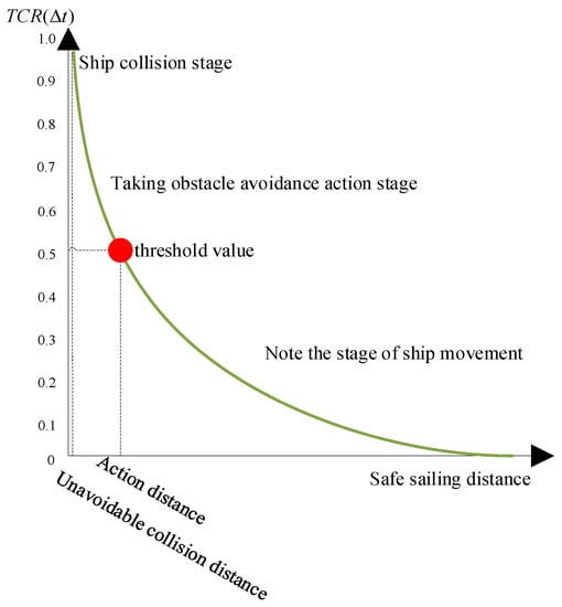 - Step 5: If the collision threat degree of one or multiple vessels in the USV monitoring area is greater than the threshold , then these vessels are determined to pose a threat to the USV. According to the value, the obstacle avoidance priority of multiple vessels will be determined, and the obstacle avoidance strategy set with the highest priority will be generated. If the degree of collision threat to the vessel is less than the threshold , it is safe for the USV to continue sailing in its current state of motion.