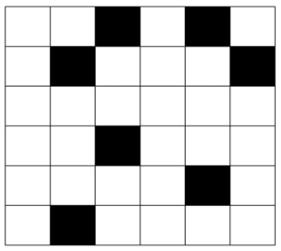 According to the characteristics of the emergency environment and the comparison of the advantages and disadvantages of modeling methods, this paper adopts the grid graph method for environmental modeling. The principle is to rasterize the environmental information and use various color features to represent the different environmental information. As shown in Figure 1, the black grid represents the impassable area, denoted by “1”; the white grid represents the free areas that can be accessed, denoted by “0”.