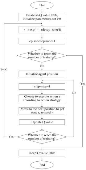 A flow chart based on the Q-learning optimization algorithm in the grid environment is shown in Figure 3: