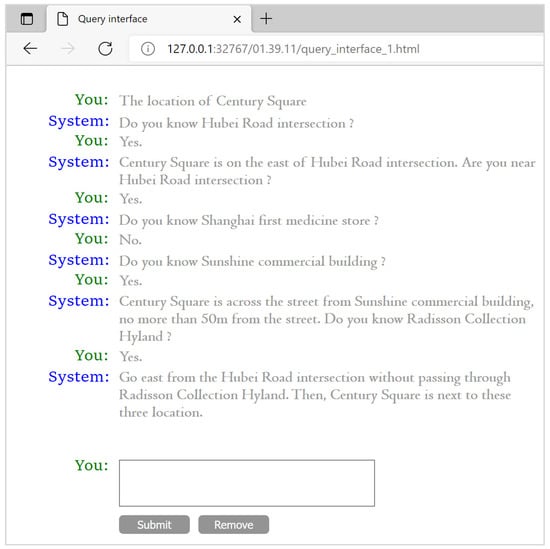 In the case study, a group of users’ viewpoints from Q&A on spatial cognition are transformed into the spatial scope in the real world. These spatial scopes can establish the relationship between qualitative spatial concepts and quantitative spatial data, so as to realize the representation of vague location description in GIS. Therefore, the query system with a Q&A mechanism embodies the application scenario of this method as a natural language interface. The case study results show that the supervaluation semantics can be adjusted in time according to the practical application, and the positioning results are precise and fit intuitive cognition. In the future, knowledge graphs will be introduced to further improve the semantic reasoning ability and positioning accuracy for vague location description.